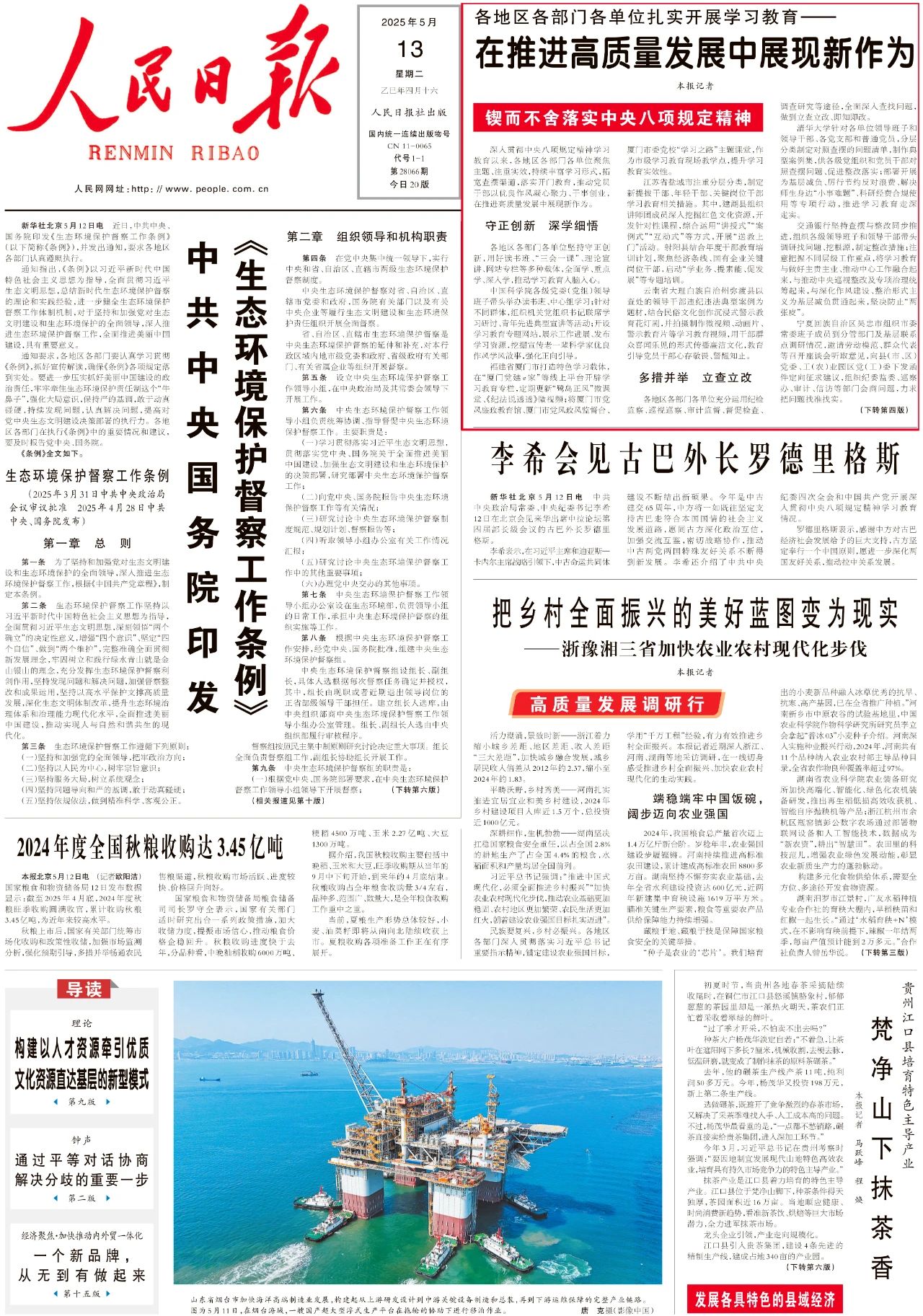 《人民日报》5月13日头版以《各地区各部门各单位扎实开展学习教育——在推进高质量发展中展现新作为》为题刊发报道,介绍了国家开发银行等扎实开展深入贯彻中央八项规定精神学习教育的有关情况。