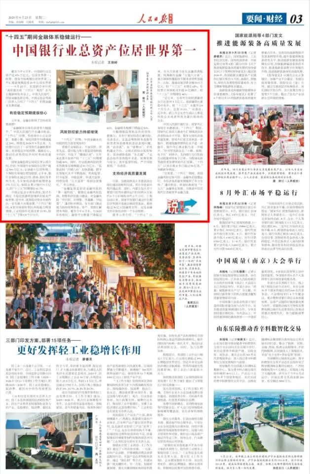 截至今年6月末,中国银行业总资产近470万亿元,位居世界第一;股票、债券市场规模位居世界第二;外汇储备规模连续20年位居世界第一……9月22日,在国新办举行的“高质量完成‘十四五’规划”系列主题新闻发布会上,中国人民银行、国家金融监管总局、中国证监会等部门负责人介绍了“十四五”时期金融业发展成就。