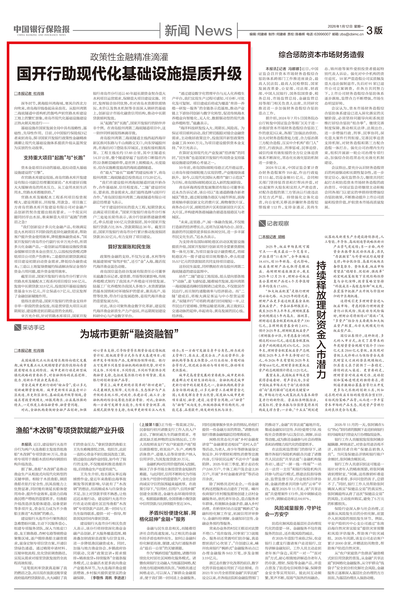 基础设施在国家发展全局中具有战略性、基础性、先导性作用。日前,《中国银行保险报》记者来到青岛,探寻国家开发银行政策性金融精准滴灌让现代化基础设施体系提质升级从蓝图变为实景的生动故事。